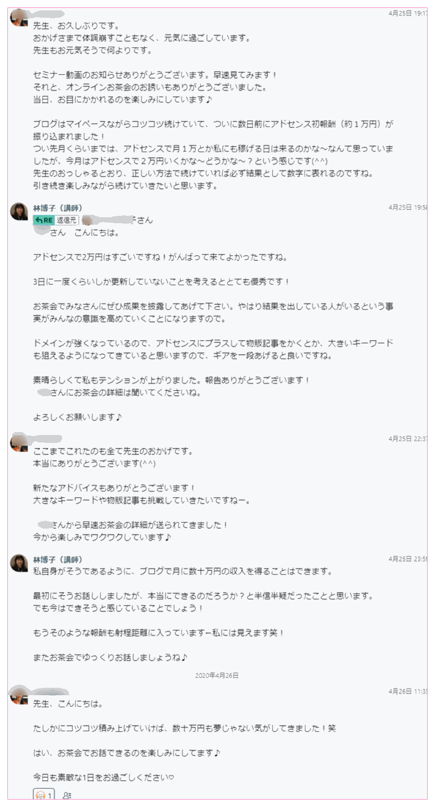 こちらの生徒さんは、ゼロからスタートした方で、ワードプレスのブログを一緒に作り、アドセンスの審査を受けて合格ました。
