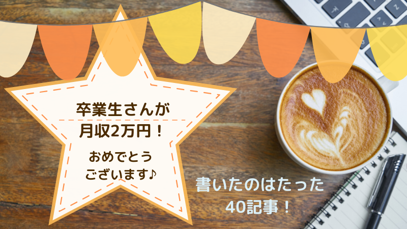 ほんの数ヶ月習っただけで、月収を2万円増やすことのできるスキルは素晴らしいものです!ここまでになるまでが、一番大変です。ブログが強くなったので、ここから報酬をアップさせていく方が簡単です。