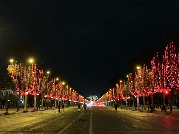 夕方からホテルから歩いて散策に出かけました。シャンゼリゼ大通り2018年の電飾は赤でした。