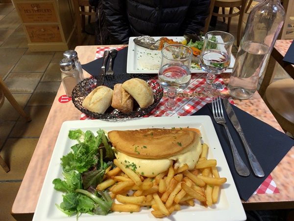 夕飯には有名なオムレツを食べました。奥は大きな魚料理です。