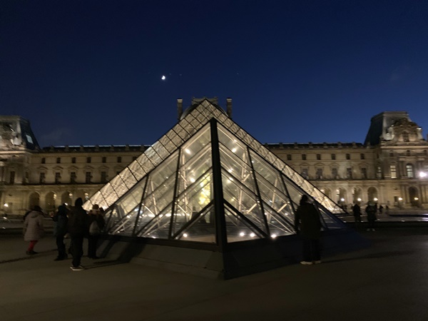 パリ一日目はシャルル・ド・ゴール空港からタクシーでホテルへ。冬のパリは16時位には薄暗いです。
