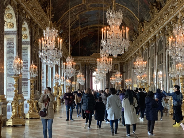 鏡の間は綺麗でしたね。同じ床をルイ14世が歩いたとは…感慨深いですね。