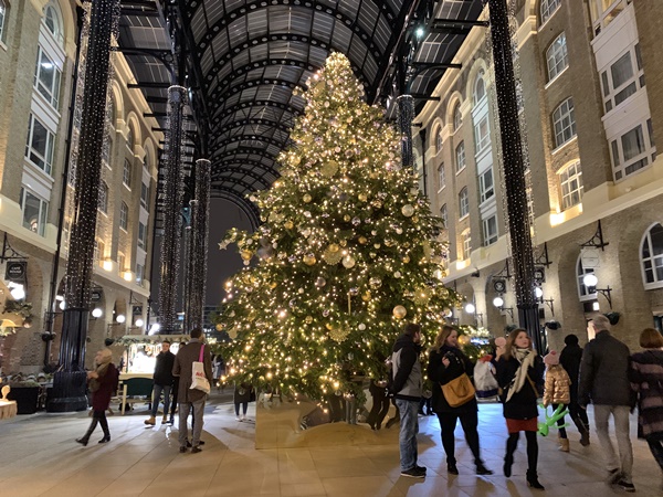 近くのアーケードには大きなツリーが!パリもそうですが本物のもみの木なのがすごいです。