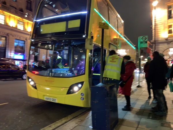 夜はナイトバスのツアーに申し込みました。オープントップバスなので2階はめちゃめちゃ寒いです(笑)!