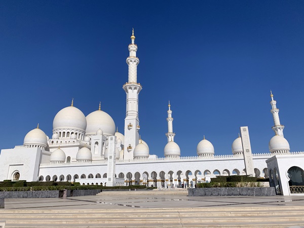 まずはアブダビにある「シェイク・ザイード・グランド・モスク」。男女ともに腕・脚を隠し、女性はさらに髪もスカーフ等で巻く必要があります。