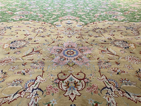 手織りのペルシャ絨毯が床一面に敷かれています。この大きさは世界一ともいわれ、お値段にして約9億円相当だそう豪華です。