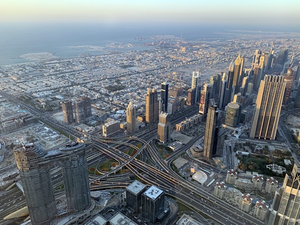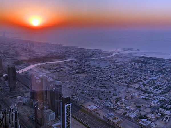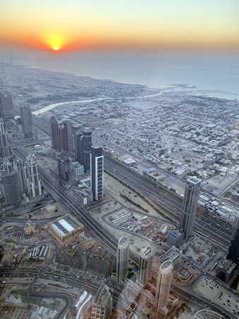 日没の時間を計算して日本からネット予約しました。すぐそこに砂漠が見えてドバイが砂漠の中にあるのが分かります。