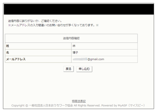 ③フォームにお名前などを入力します→「確認する」をクリックします