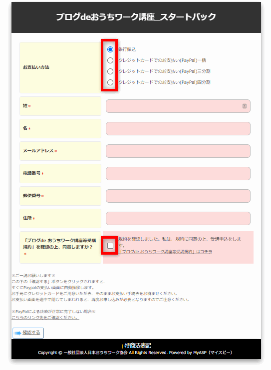 ④受講規約を読んで頂きチェックを入れます