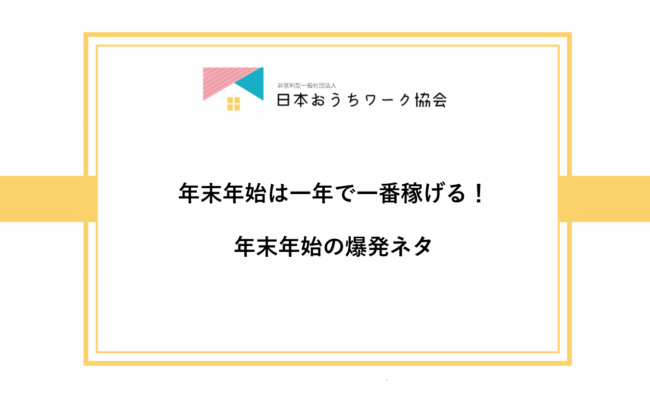 12月は1年で最も報酬が伸びやすい時期なので、12月に開催した「ブログdeおうちワーク講座」では年末年始にアクセスが集まりやすい記事ネタを沢山教えました。