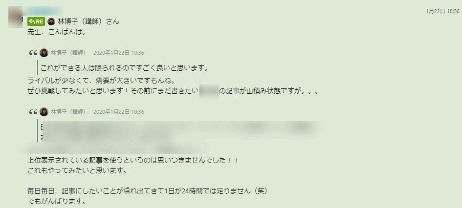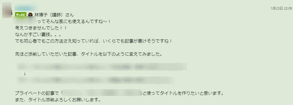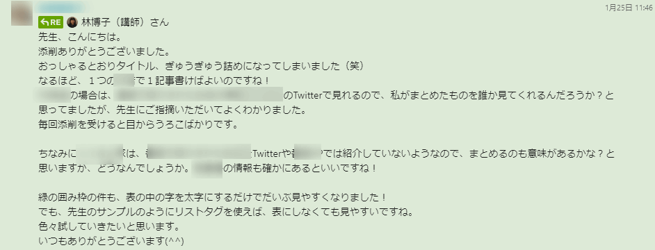 私の指示通り記事を書いていると、生徒さんは割とすぐにコツを掴んでくれます。